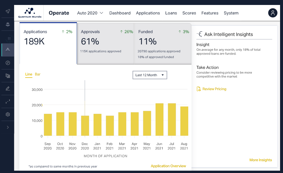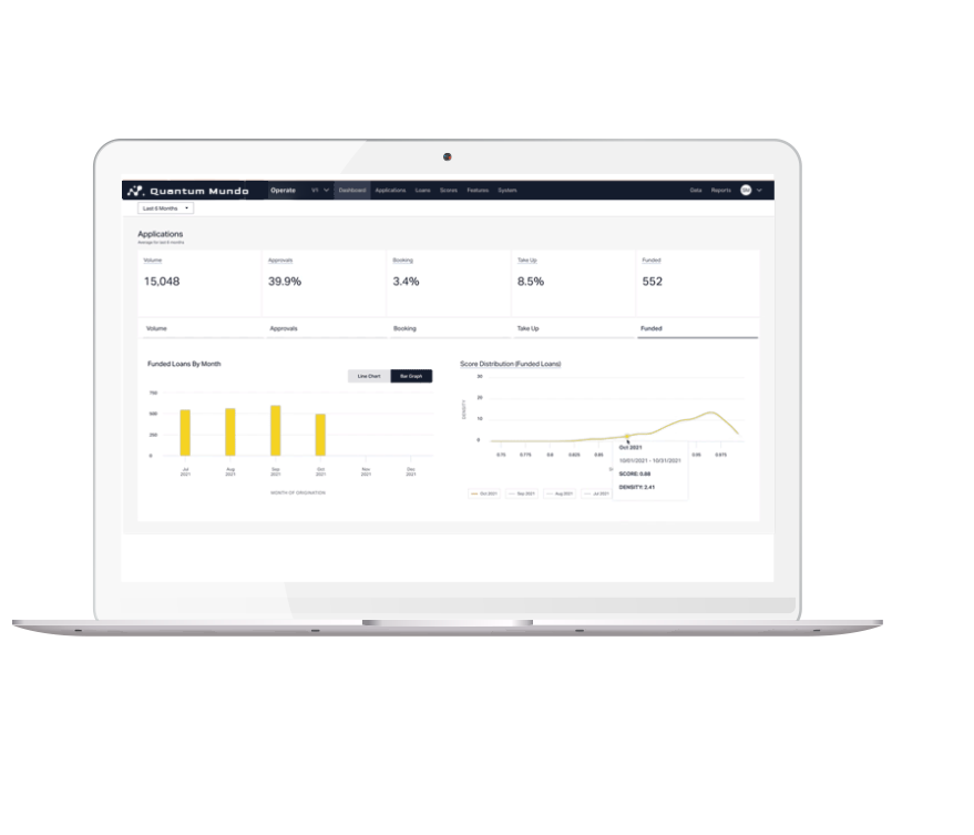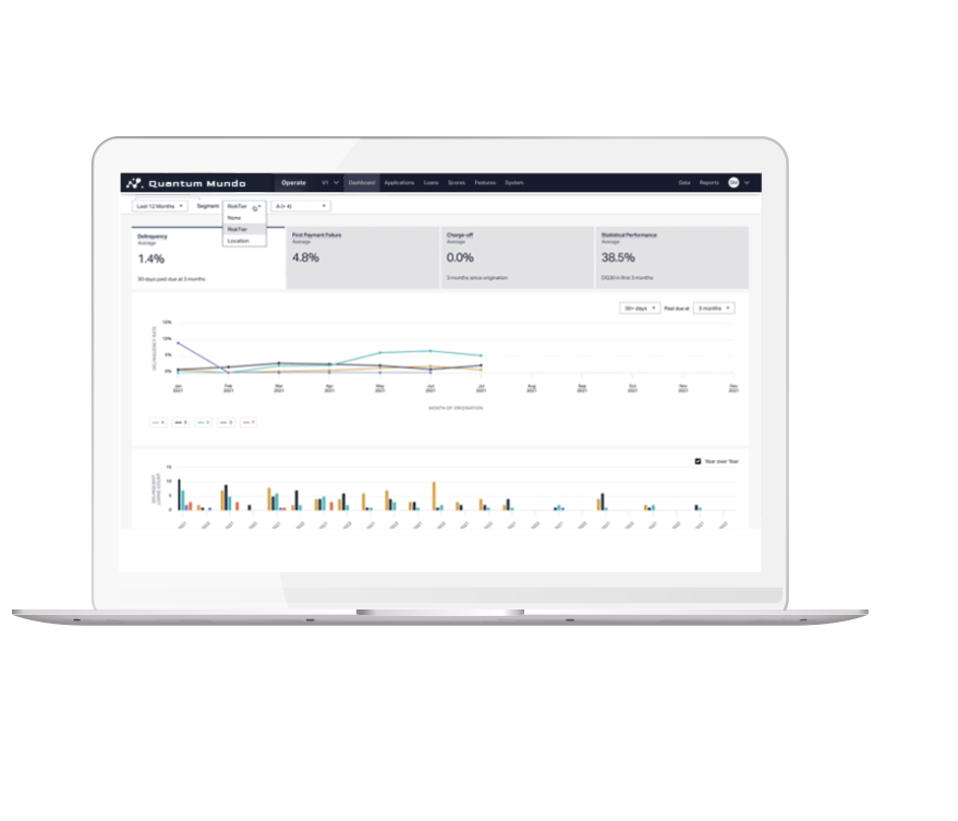 Quantum Mundo software comes with machine learning monitors that alert you when you cross thresholds for key metrics likely to affect your portfolio, making it easy to amend credit policy or refit a model when necessary.