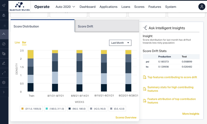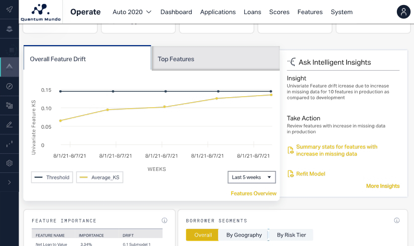 With Operate, analysts can connect the dots—from score distribution, feature importance, and drift to loan volume, booking trends, and borrower changes.